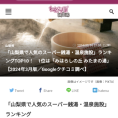 山梨県 温泉ランキング1位【ねとらぼ調査】