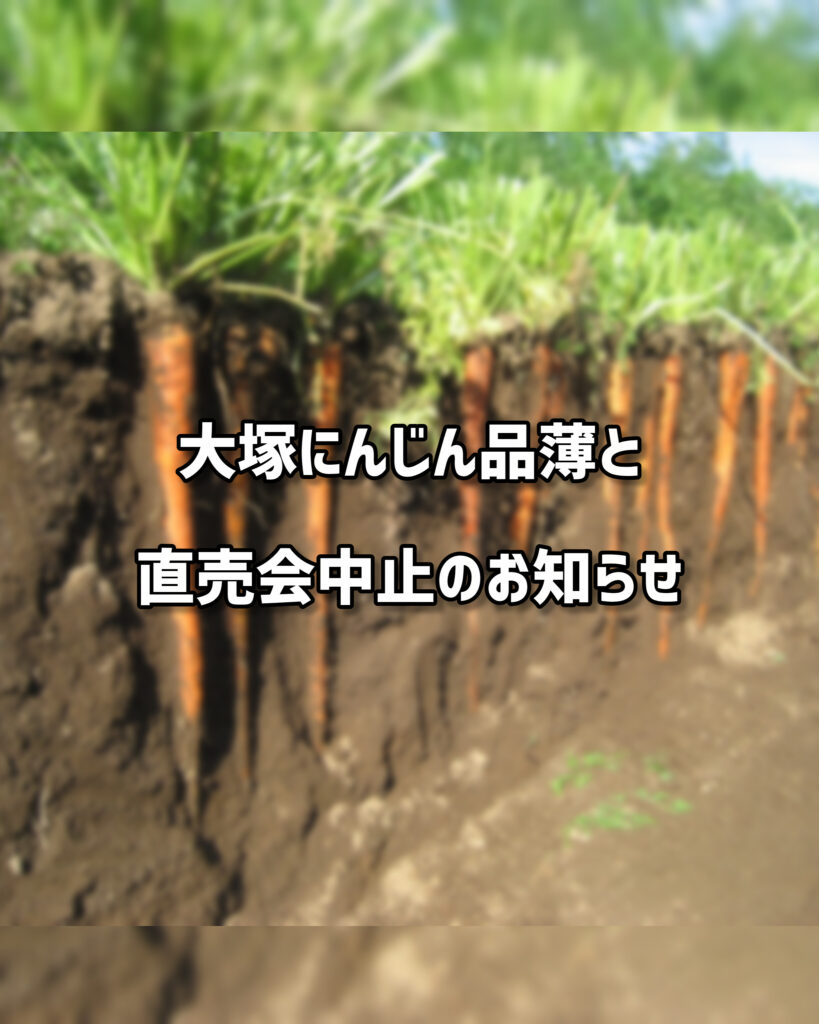 種まきを行う6月下旬からの猛暑と干ばつの影響で、大半の畑では発芽不良となり、今季の収穫量は大幅に減少します。今年も11月29日(土)から販売していますが、店頭に品薄状態が続いております。そして、毎年恒例の「大塚にんじん直売会」の開催は、数量の確保が困難なことから中止とさせていただきます。