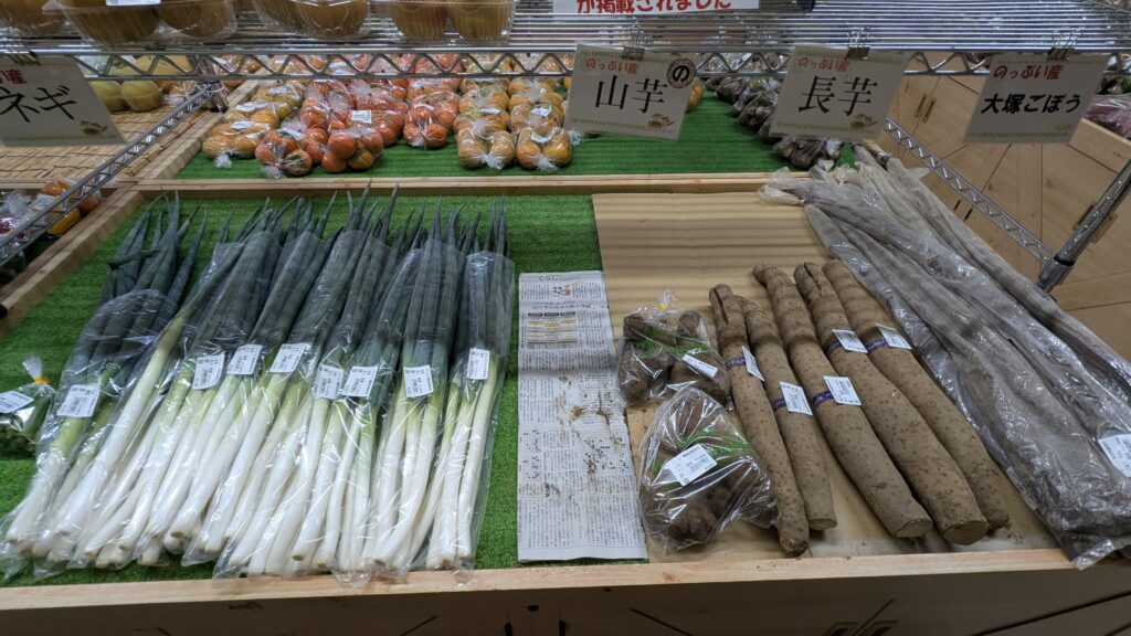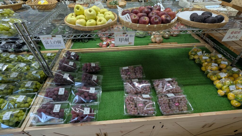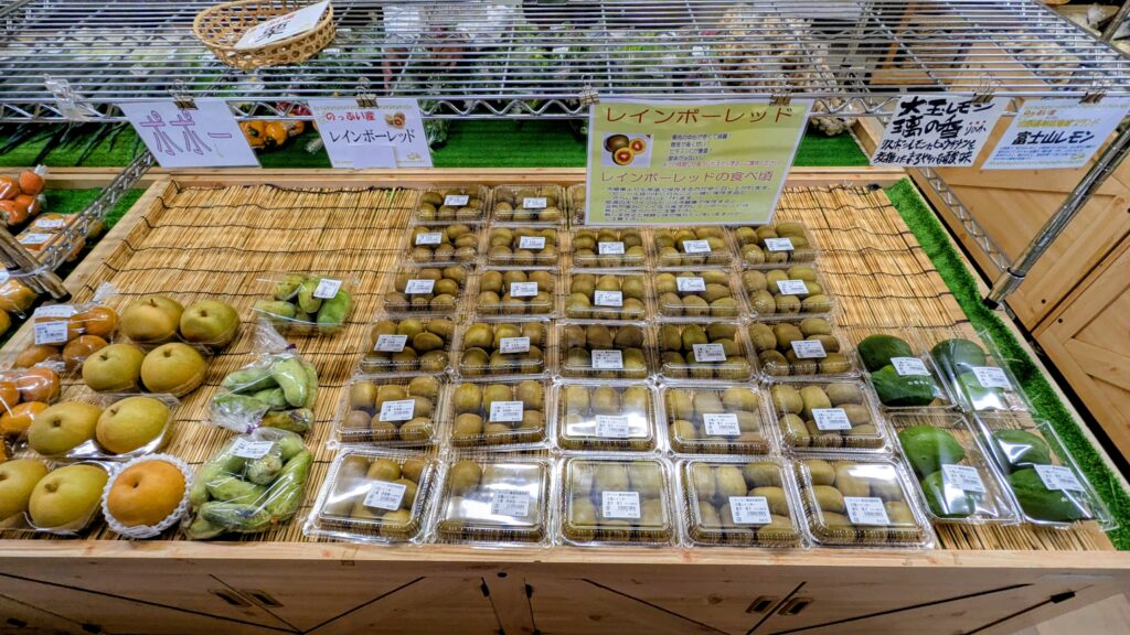 そして、秋の味覚もぞくぞく入荷しており、キウイフルーツのレインボーレッドや柿をはじめ、里芋や落花生、ネギなどご用意しています。温泉と一緒に、山梨の旬な農産物のお買い物をぜひお楽しみ下さい。皆様のご来店をスタッフ一同、お待ちしております。