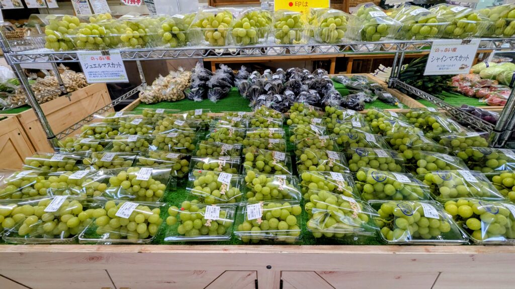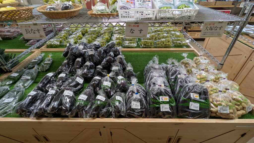 のっぷい農産物直売所では、ブドウの販売も残り数日となっております。10/10時点ではシャインマスカットをはじめ、ジュエルマスカット、富士の輝、甲州が入荷しております。また、地元特産の大塚なすも終わりを迎えようとしておりますので、今シーズンまだ召し上がっていない方は、急に無くなってしまうこともございますのでお急ぎください。
